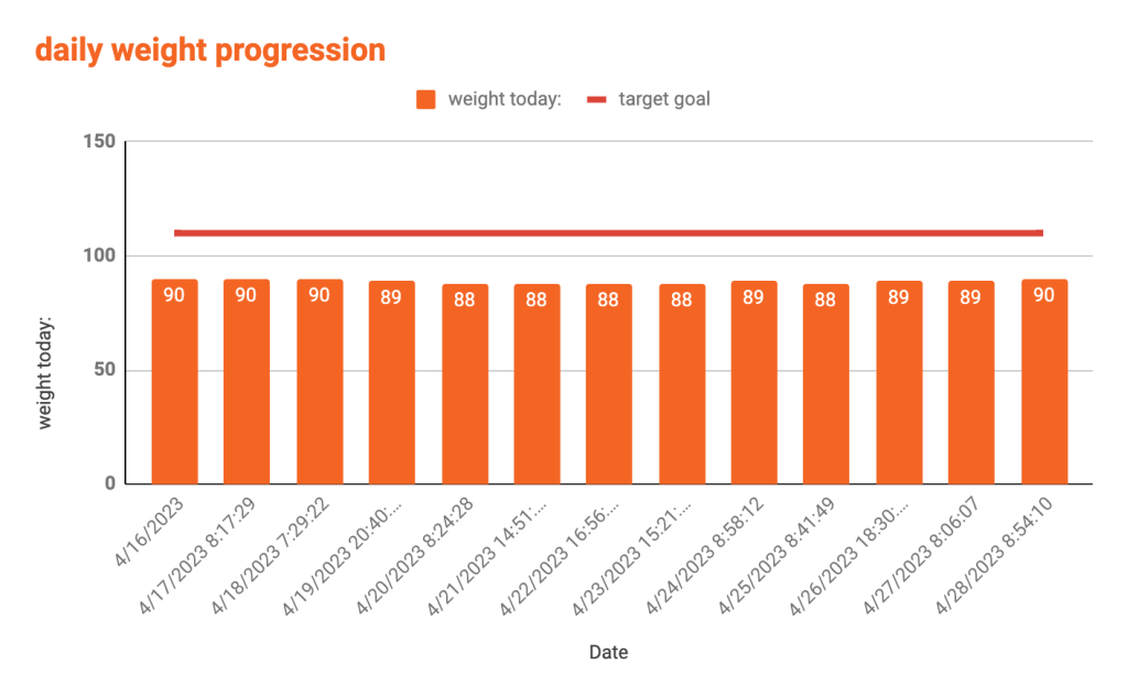 - Orange bar (8? lbs), yellow bar (10 lbs), blue bar (15? lbs)