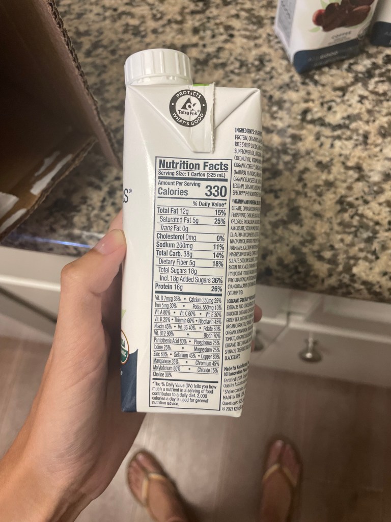 Taste = 8/10; I do think it’s an acquired taste. It wasn’t thick, which I liked. The coffee flavor was decent! Like I said, I really hope there wasn’t actual caffeine in it… I guess we’ll find out if I can’t fall asleep in the next hour. Comparing this taste to the ENU drinks I’ve had, I’d say I liked Kate Farms better.
