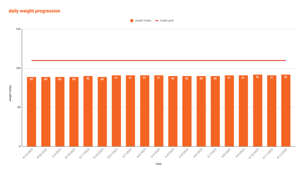 92 lbs – 92.8 !!! LFG !!!! Prob because it was pre-poop?! But I’ll take it.