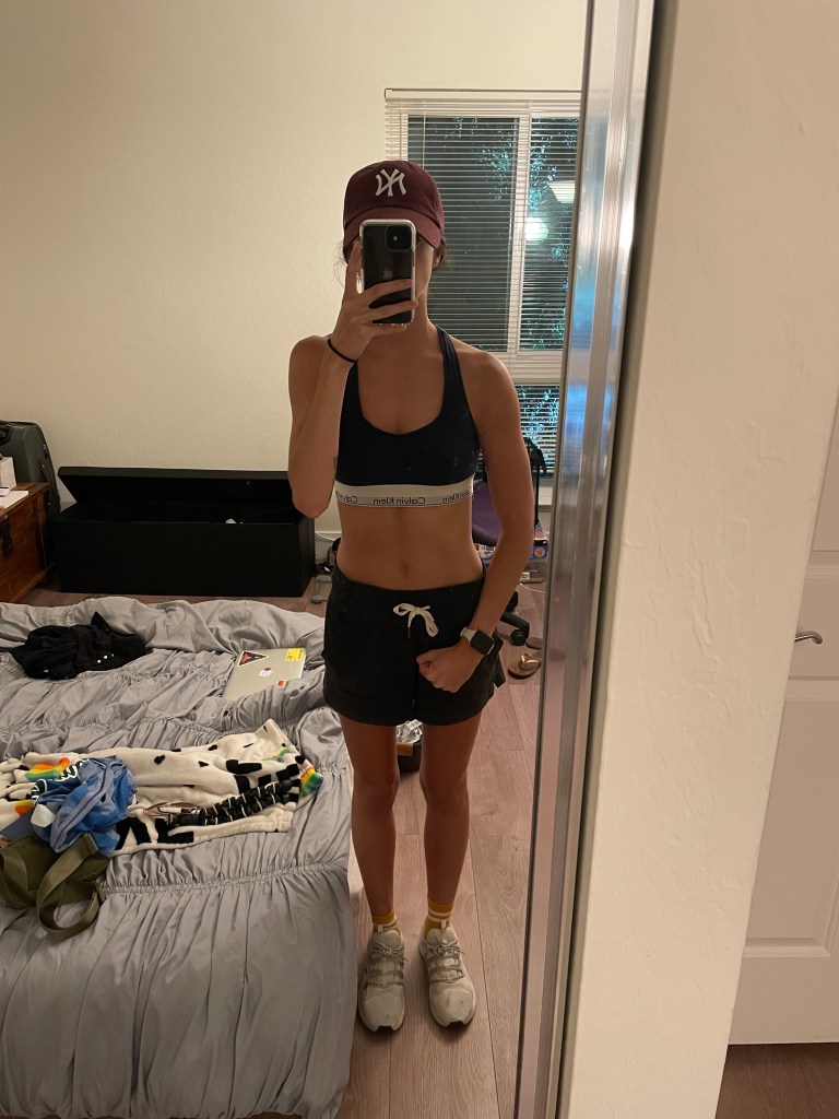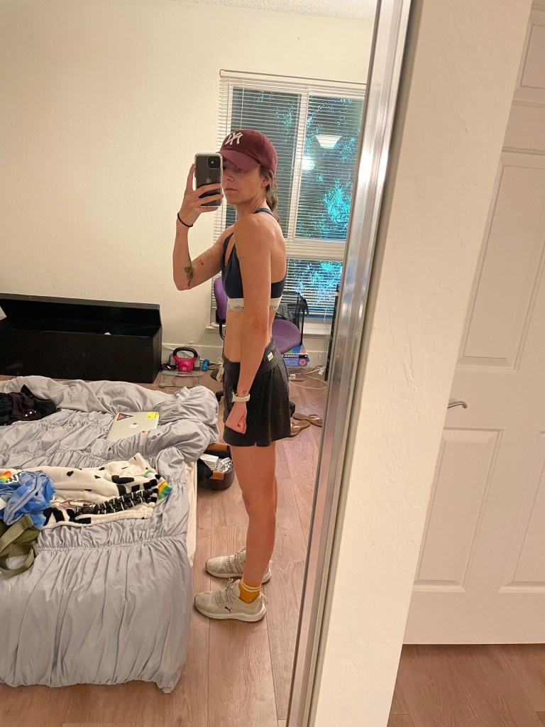 - Blue bar (15 lbs) 1 set behind back, 1 set in front