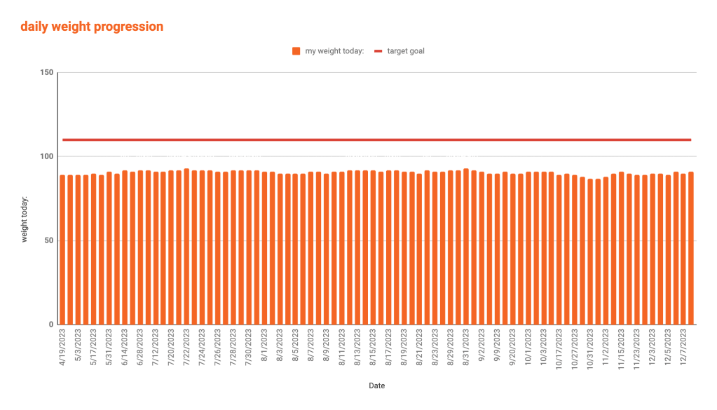 - Weight: black bar (20 lbs), red bar (25 lbs), big black bar (30 lbs)